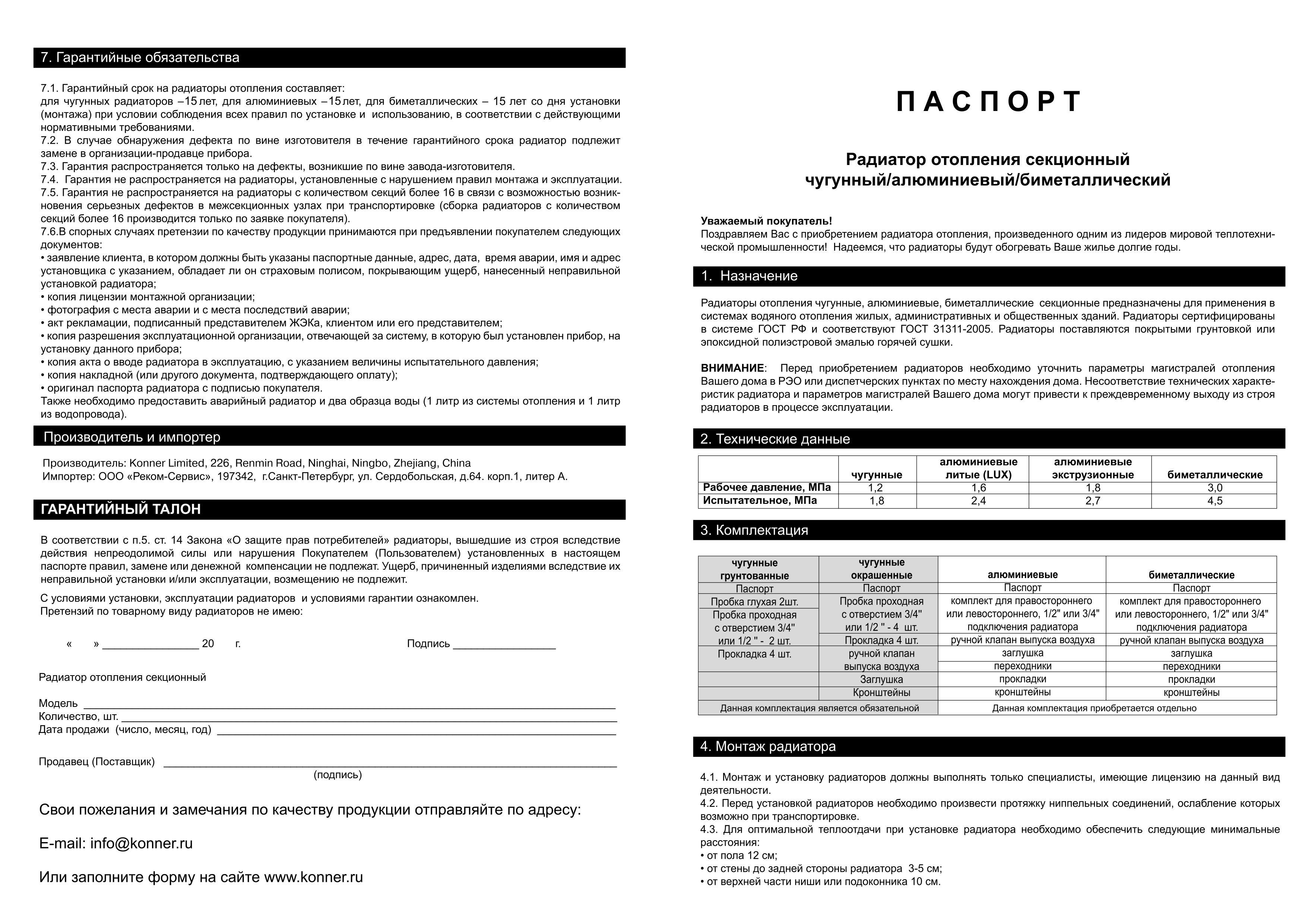 Теплоот. 1 секции- 125 Вт, Рабочее дав.- 16 атм, вес 1 секции- 0,78 кг.