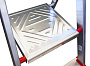Стремянка в рабочем положении надежно фиксируется рабочей площадкой, а начиная с пятиступенчатой и выше страховочными ремнями.